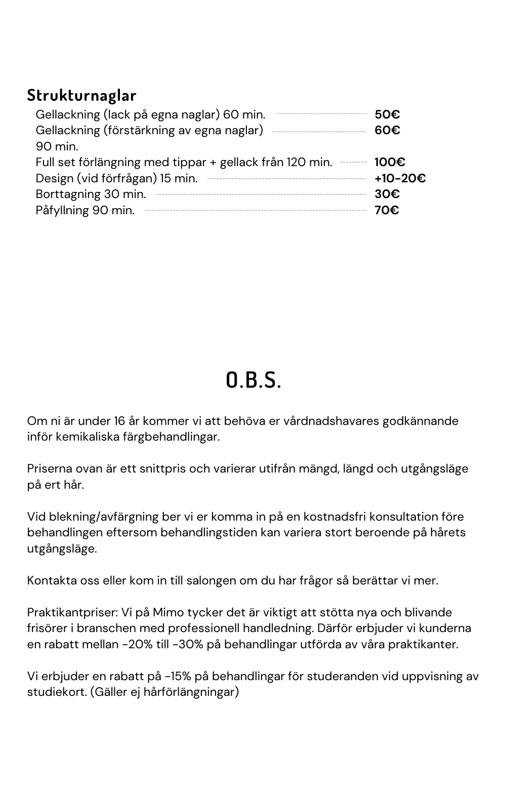 Studierabatt -15% med studiekort. Gäller ej hårförlängning!